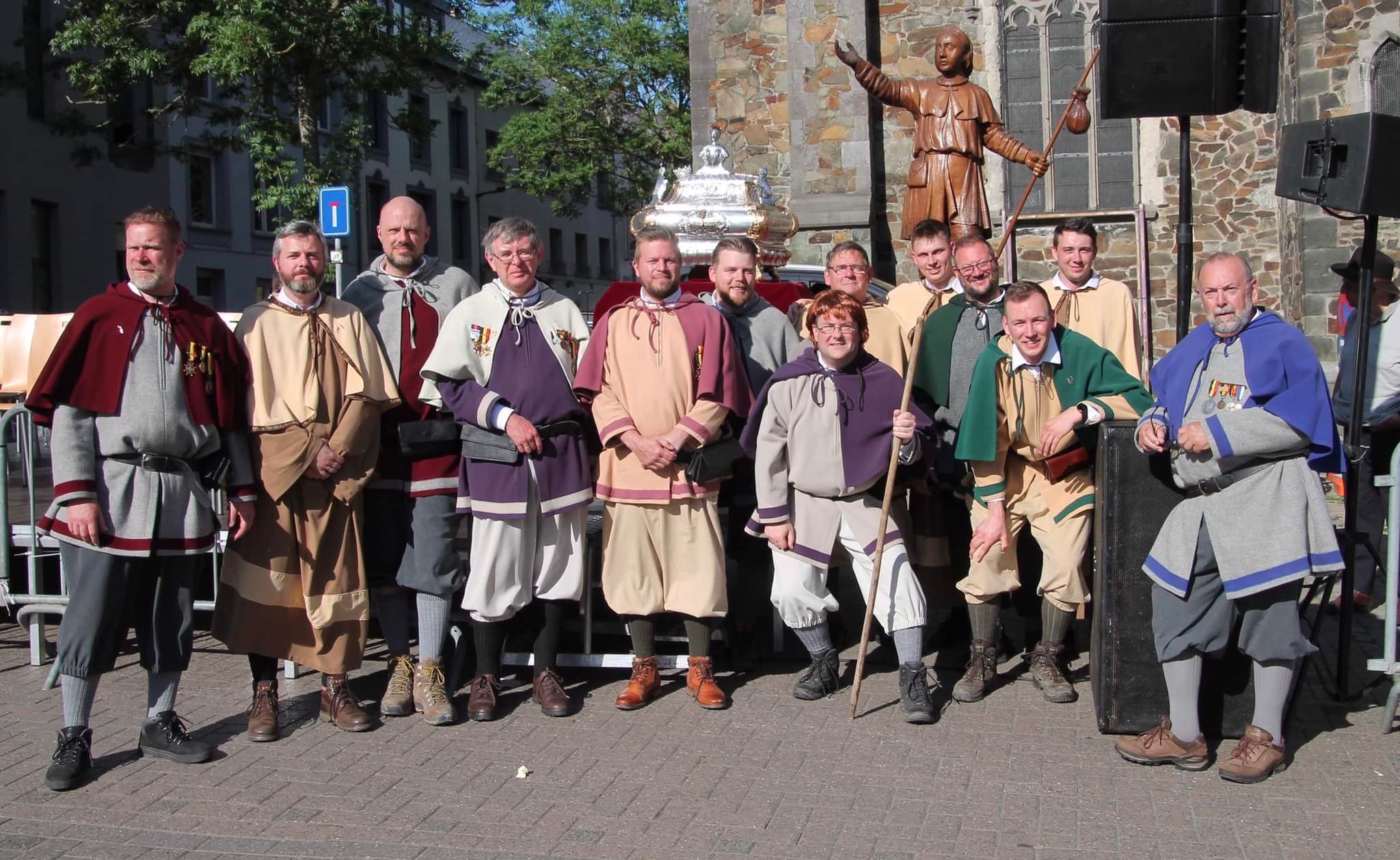 De Kasdragers van Sint-Veroon telt 15 leden die het zilveren reliekschrijn tijdens de dagtocht op hun schouders torsen.